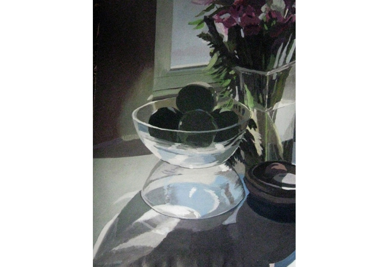 Green Apples with Vase, acrylic